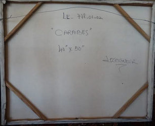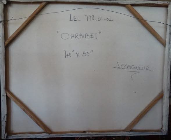 This original 40"x50" painting is titled "Caraibes" & signed "Legagneur" at the back by the famous Haitian contemporary Haitian painter Jean-Claude Legagneur. It is an acrylic on canvas, unframed, and in excellent condition. It belongs in the private collection of an art collector in Texas, who bought it in 2005 from the artist's ex-wife, Michaelle. She said Legagneur did not sign the front since he had painted it for her and did not want it sold.