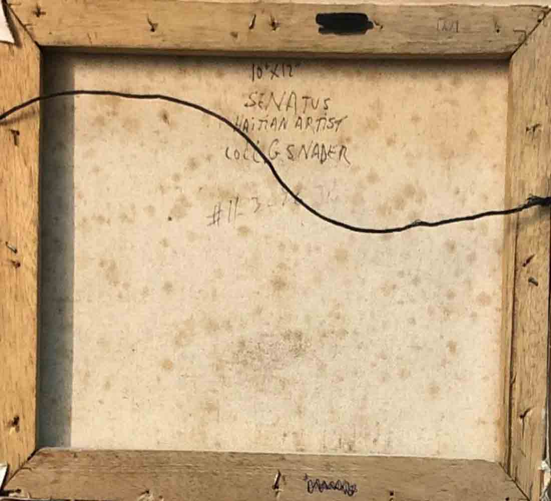 Jean-Louis Sénatus (born August 16, 1949, in Léogâne, Haiti) is a Haitian painter celebrated for atmospheric, dreamlike compositions and a refined command of color. He began drawing and painting in 1967 and pursued formal studies in Port-au-Prince at the Lope de Vega Institute and the Hall of Plastic Arts in 1969. Early in his career, he worked for a year with the Greek painter Scordillis, an experience that helped shape his technical confidence and artistic direction.In 1968, Sénatus received second prize in an Air France–sponsored poster competition in Port-au-Prince. From 1975 to 1983, his work was exhibited internationally in Martinique, Guadeloupe, Denmark, France, Switzerland, Curaçao, the United States, Italy, and England—establishing his presence beyond Haiti’s borders. Sénatus is often associated with “neo-primitive” painting for his poetic, imaginative imagery, yet his technique reflects disciplined virtuosity. His paintings are distinguished by transparent, finely nuanced color and a distinctive approach in which each composition becomes a focused harmony—often a cameo of one or two tones—applied with such delicacy it can feel almost airbrushed or “sprayed” onto the canvas. As noted in La Peinture Haïtienne / Haitian Arts (Marie-José Gardère, Éditions Nathan, Paris, 1986, p. 181), this luminous palette shifts his vision toward distant climates of the imagination, transforming each work into a quiet, resonant dream-space.