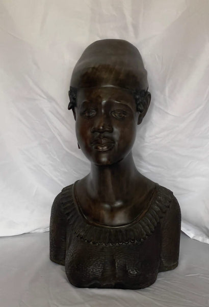 L.S. Decimus 10"Lx6"W"x15"H Black Female Bust Hand Carved in Mahogany Wood #1MFN