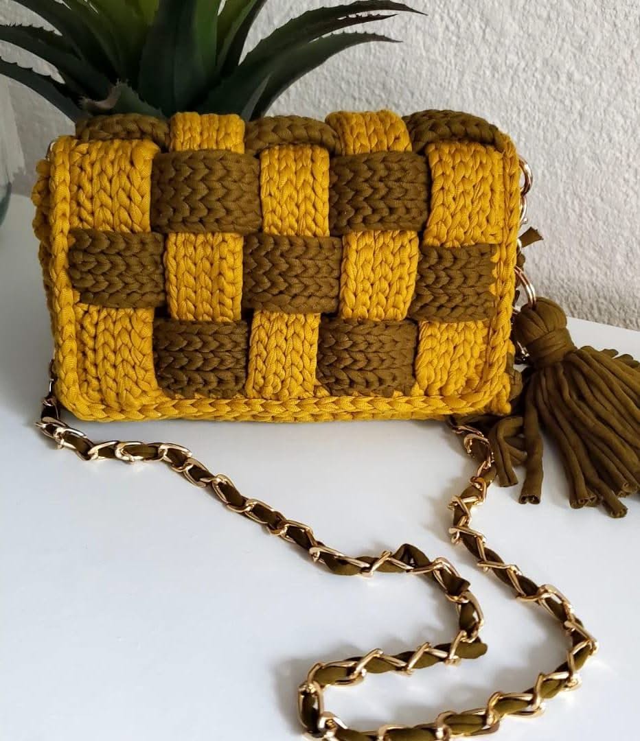 Lady Katrina- Kathline SALVANT: BOTTEGA 15cmx20cm Olive Green and Mustard Bag Handmade in Haiti