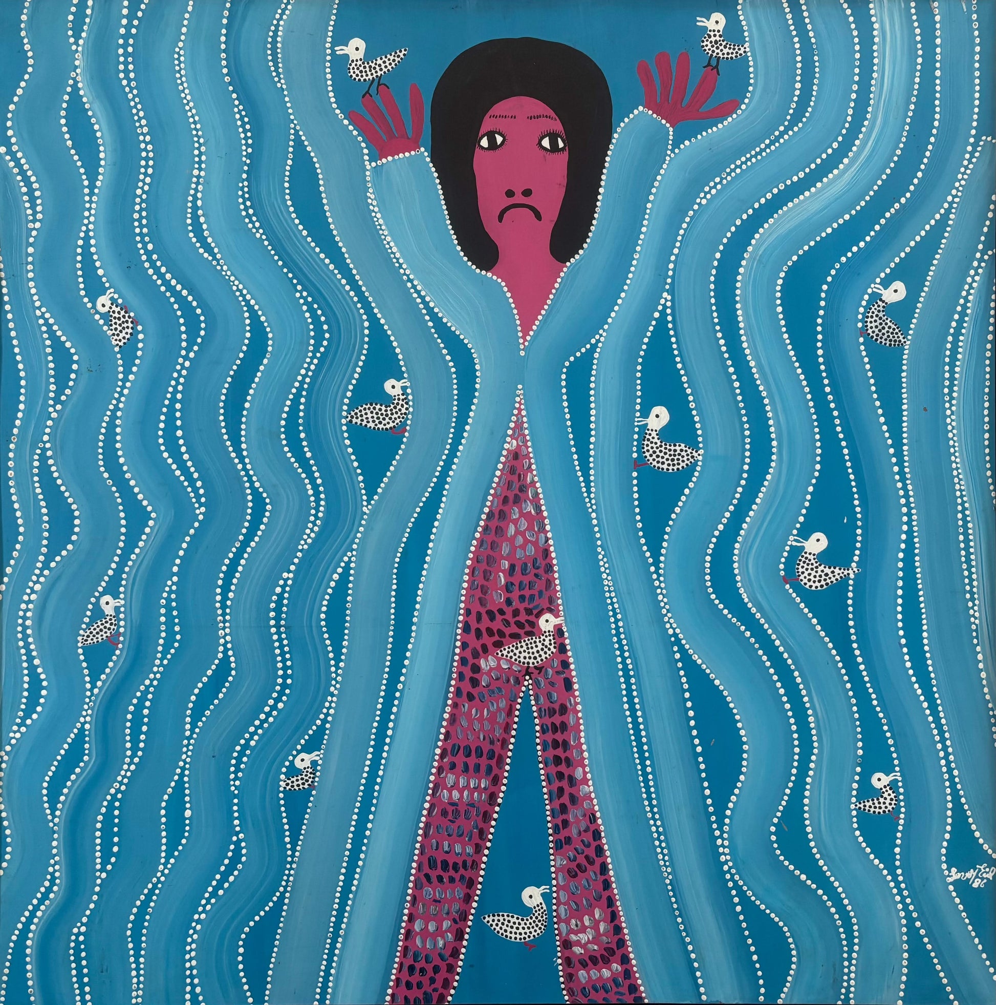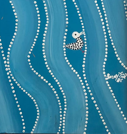 Levoy Exil 24"x24" Blue Spirit & Birds 1986 Acrylic on Board Unframed Painting #1AC