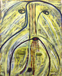 Buy today this original painting duly signed by Haitian artist from Saint-Soleil Movement, Payas ( Pierre Sylvain Augustin) painted in 2007. Ii is an oil on canvas depicting several faces of spirits.