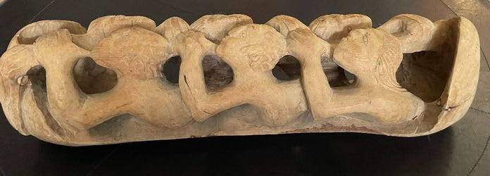 Nacius Joseph 21"L x 4"W x 6"H Six Boat People Hand-Carved Mahogany Wood Sculpture #1MFN