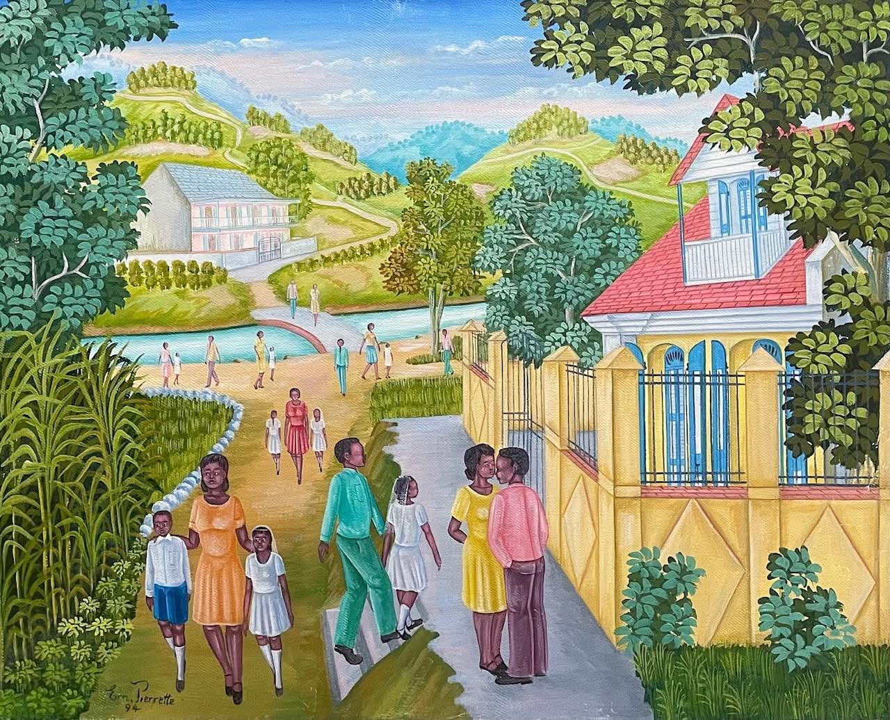 Emmanuel Pierrette is a Haitian-born Cap-Haitian painter born on December 21, 1960. Pierrette started to paint in primary school in 1976 to make a living. He was inspired by the Cap-Haitian artists around him, such as the Obin family, Max Gerbier, Rony Leonidas, Pierre-Louis Riché, and Jean-Baptiste Jean. In 1988, he went to ENARTS, an art school in Haiti, for a year to improve his art skills. He developed his unique style at the Cap-Haitian school while maintaining the preliminary base. He has exhibited in France, Switzerland, Asia & the USA and participated. in "La Rencontre des Deux Mondes" Exhibition in France.